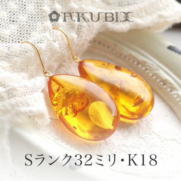 【天然琥珀】K18ピアス こはくアクセサリー【ak2029】【Sランク】【フックタイプ】【イヤリング】【アンバー】【goldhook】【天然石・パワーストーン】ギフト 贈り物に プレゼントに ジュエリー【送料無料】