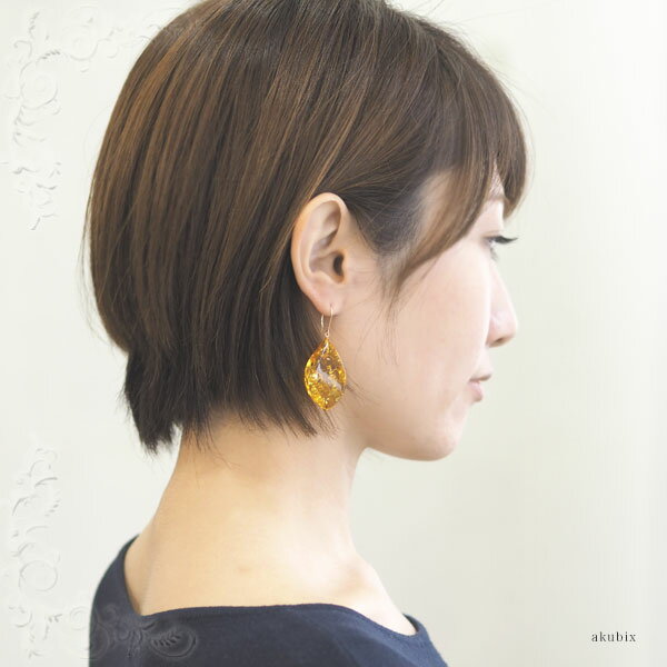 本当にきれいな琥珀だからできるシンプルなK18ゴールドピアス。