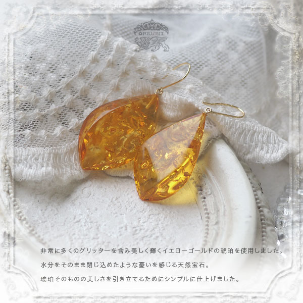 ラッピングについて 一点ものジュエリー 星屑のようにキラキラと輝くイエローゴールドのこはく。