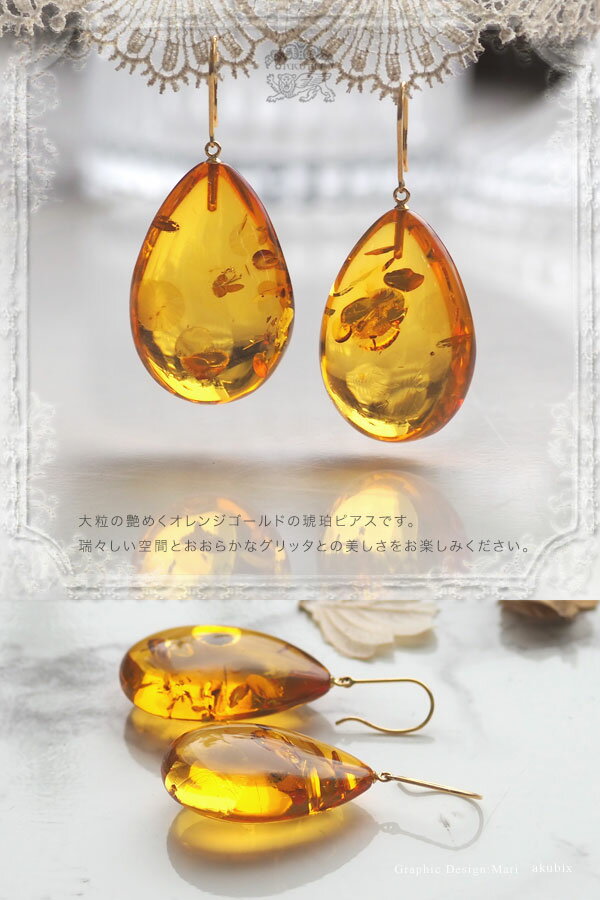 /インターナショナルアンバー協会認定正規品 /原産地:リトアニア共和国 /宝石:バルト海産出 天然琥珀 /金属:K18gold /琥珀サイズ:約32×21×h10.5mm /ポスト:太さ0.7mm ケース、保証書付。
