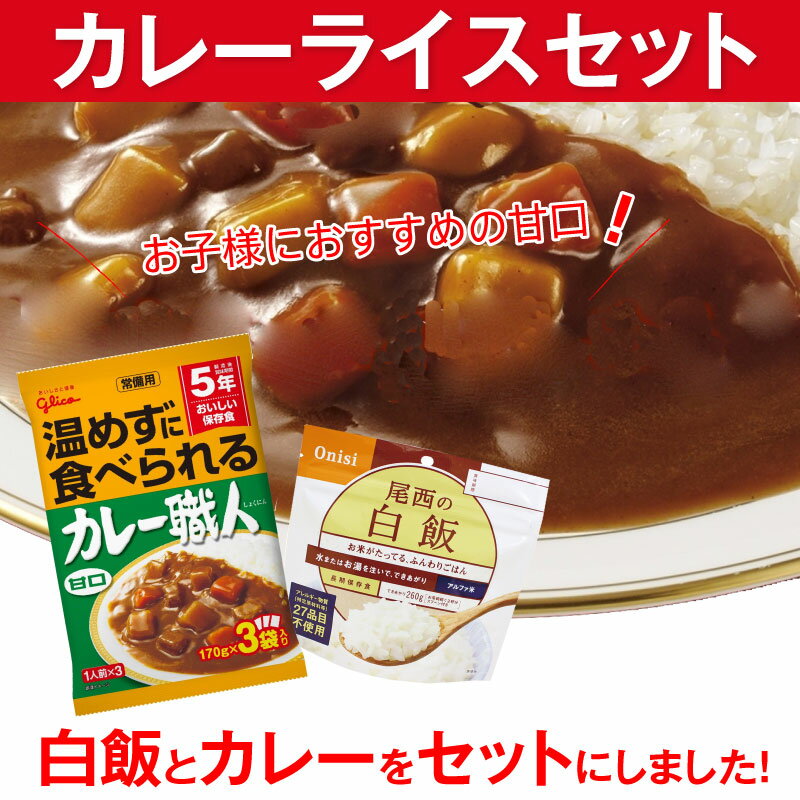 5年保存 非常食 江崎グリコ 常備用カレー職人 1袋3食入り 甘口 尾西の白飯 3食 セット★