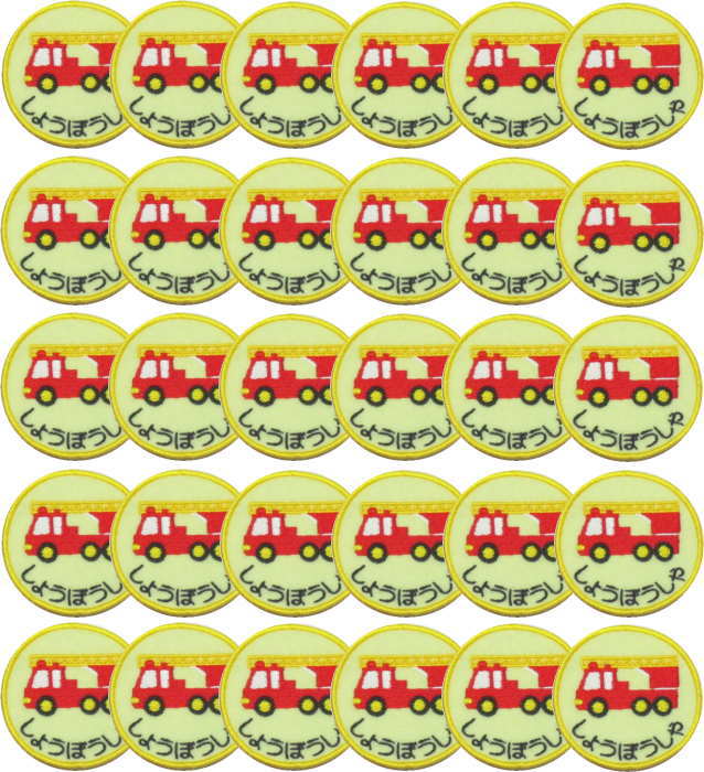 【名入れワッペン消防車/イエロー30枚】まとめ買い 上履きアイロン 名前 ワッペン 大 カタカナ 漢字 名前 入り 名前入り ワッペン 幼稚園 名前 ワッペン 名札 フェルト ひらがな なまえワッペン アイロン 上履き入れ 名前 文字入り