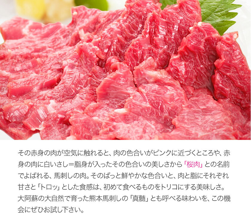 【ふるさと納税】熊本名物 サシ入り厳選馬刺・赤身詰め合わせセット(タレ付)150g×3パック お届け時期:入金確認後20日前後