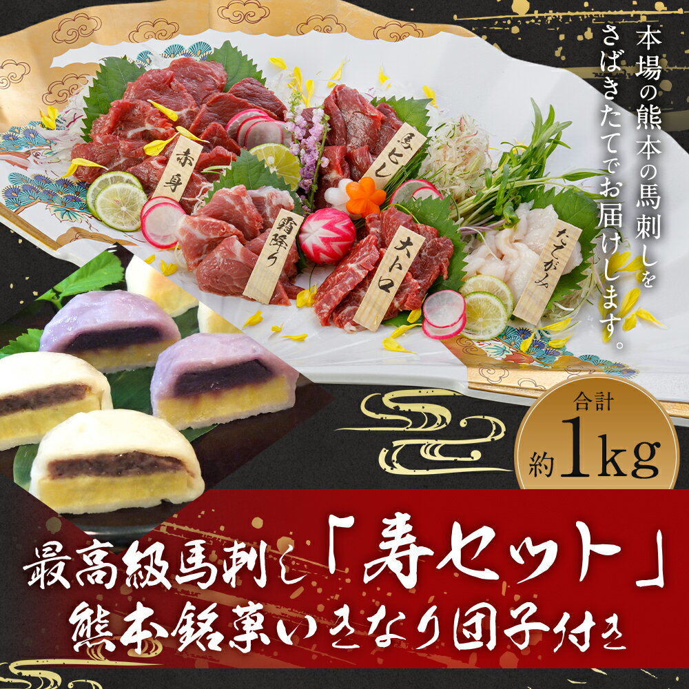 【ふるさと納税】国産 最高級馬刺し「寿セット」+いきなり団子馬刺し 合計1kg 上赤身馬刺し 大トロ馬刺し 中トロ馬刺し たてがみ馬刺し 馬ヒレ馬刺し いきなり団子 冷凍 送料無料 満足