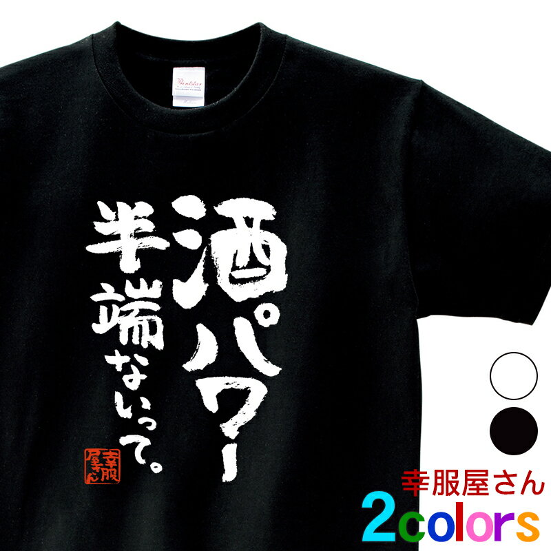 おもしろ 漢字Tシャツ「酒パワー半端ないって。」男女兼用 オールシーズン 綿100% ホワイト/ブラック 140cm-160cm/S-XL ka400-45 KOUFUKUYAブランド 送料込 送料無料